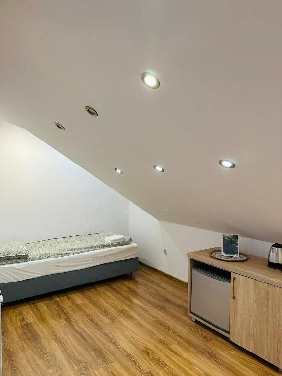 Pokój Dwuosobowy typu Budget to kompaktowa, funkcjonalna przestrzeń o powierzchni 10 m², idealna dla dwóch osób szukających wygodnego noclegu w atrakcyjnej cenie. Do dyspozycji Gości są 2 łóżka pojedyncze, a komfort snu potwierdza ocena 8,9 na podstawie 33 opinii.